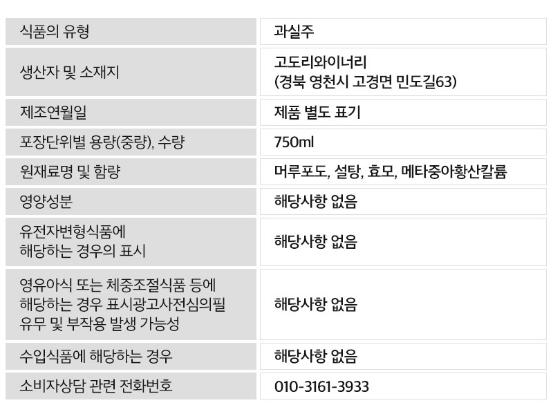 [고도리 와이너리] 레드와인 드라이 12도 750ml