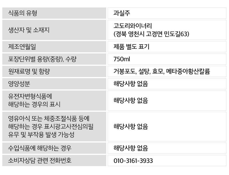 [고도리 와이너리] 화이트와인 스위트 10.5도 750ml